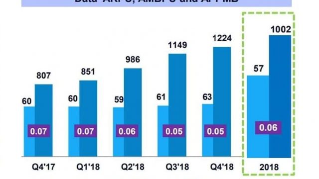 ২০১৭ সালের শেষে তাদের গ্রাহক প্রতি ডেটার ব্যবহার ছিল ৮০৭ এমবি। তখন কার্যকরি ইন্টারনেট সংযোগের সংখ্যাও ছিল অনেক কম।