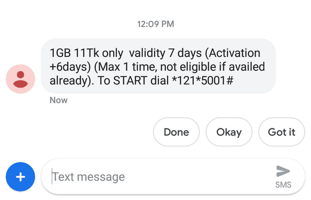 ইন্টারনেট অফারটি SMS অফার।