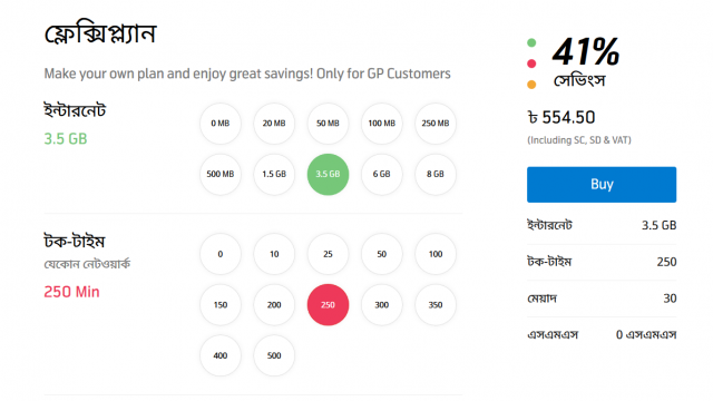 গ্রামীনফোন এ ৩০ দিন মেয়াদ এ ২৫০ মিনিট ও ৩.৫ জিবি (৫০০ এম্বি বেশি) এর দাম ৫৫৪.৫০ টাকা! নিচের স্ক্রিনশট দেখুন!
