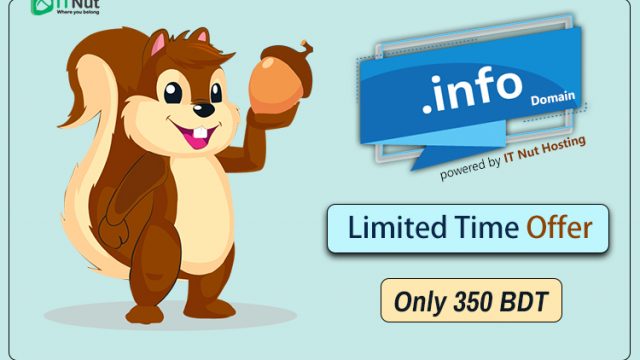 টপ লেভেল ডোমেইন গুলোর মধ্যে.Info ডোমেইনও অনেক জনপ্রিয়। সাধারণত বিভিন্ন ধরনের ইনফরমেশন বা তথ্যবহুল সাইটের জন্য এই ডোমেইনের সর্বাধিক ব্যবহার হয়ে থাকে। যারা পছন্দের.Info ডোমেইন কিনতে চাচ্ছেন তাদের জন্য IT Nut Hosting দিচ্ছে উক্ত ডোমেইনে বিশেষ মূল্যে ছাড়।