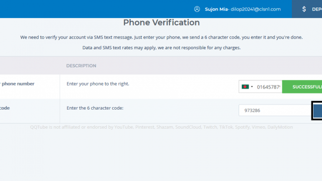তারপর আপনার ফোন ভেরিফাই এর জন্য মোবাইল নাম্বার দিয়ে সাবমিট করুন। ভেরিফিকেশন কোড আসলে নিচের বক্স এ বসিয়ে Verify বাটনে ক্লিক করুন।