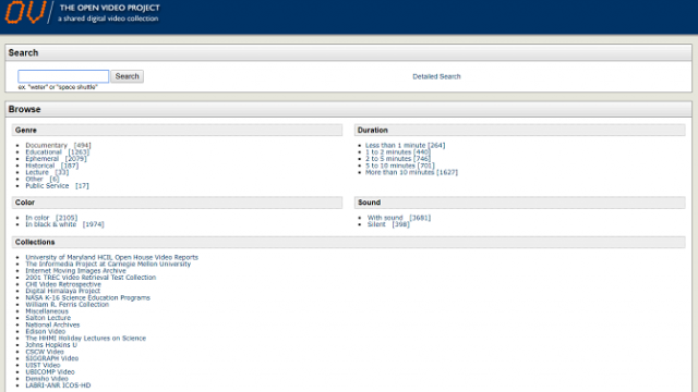 ওপেন ভিডিও প্রকল্পটি উত্তর ক্যারোলিনা বিশ্ববিদ্যালয়ের চ্যাপেল হিলের স্কুল অফ ইনফরমেশন অ্যান্ড লাইব্রেরি সায়েন্সের ইন্টারঅ্যাকশন ডিজাইন ল্যাবরেটরিতে তৈরি করা হয়েছিল। এটা কাজ করে গবেষণা সমিতিকে নিয়ে এবং সাথে যারা কাজ করে ডিজিটাল লাইব্রেরীতে। ওপেন ভিডিও প্রকল্পে পাওয়া বেশিরভাগ ভিডিও র প্রকৃতি শিক্ষামূলক। নাসার সংরক্ষণাগার থেকে প্রচুর ভিডিও রয়েছে, পাশাপাশি ১৯৫০ এর দশকের ক্লাসিক টিভি বিজ্ঞাপণ এবং শিক্ষামূলক চলচ্চিত্রের সংগ্রহ রয়েছে। আপনি যদি ঐতিহাসিক ভিডিও অনুসন্ধান করতে চান তবে ওপেন ভিডিও প্রকল্পটিকে দেখতে পারেন।