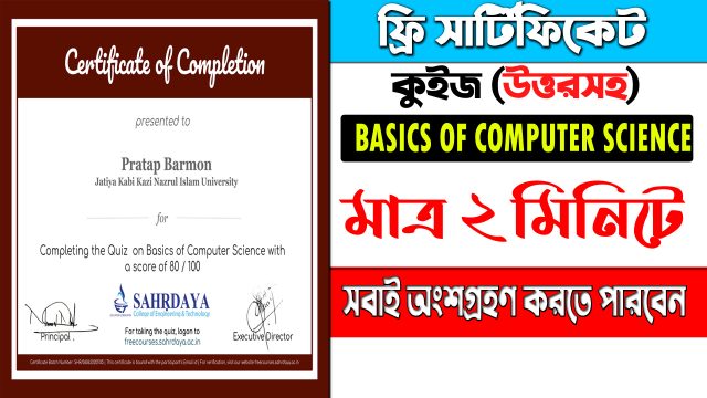 মাত্র ২ মিনিটে কুইজ খেলে জিতে নিন ফ্রি সার্টিফিকেট