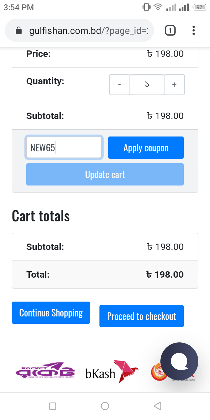 ২) এখানে প্যাকেজটির রেগুলার মূল্য ১৯৮ টাকা হলেও নতুন গ্রাহকদের জন্য ৬৫ টাকা ছাড় থাকছে! সেটা কিভাবে? জাস্ট কুপন ঘরে লিখবেন NEW65 তাহলেই হবে!
