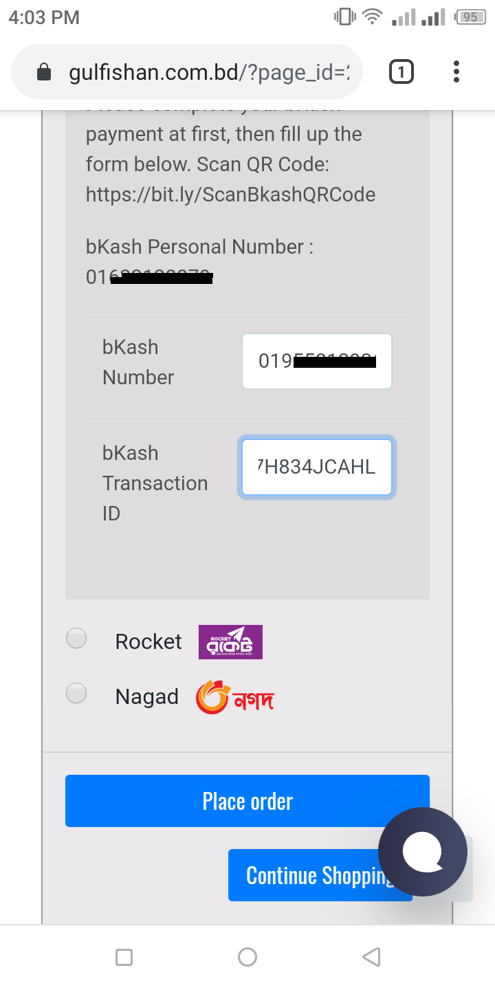 ৯) বিকাশের নাম্বার ঘরে যে নাম্বার থেকে বিকাশে টাকা সেন্ড করেছেন সেটা লিখবেন আর নিচের bKash Transaction ID ঘরে ট্রানজেকশন আইডিটি লিখবেন। আইডি না মিললে অর্ডান গৃহীত হবে না এবং এর দায়িত্ব গুলফিশানবিডি নিবে না।