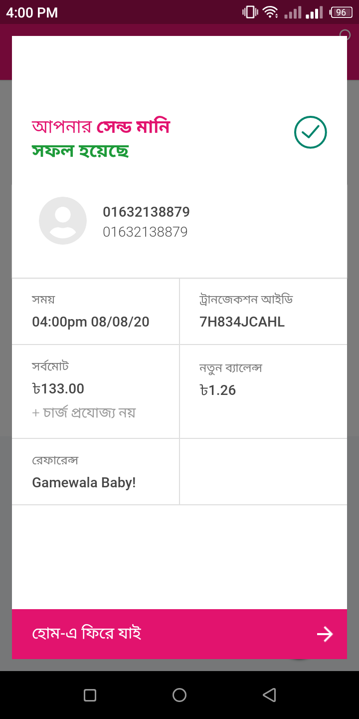৮) এবার বিকাশে গুলফিশানের নাম্বারে Send Money করবেন! এটা বিকাশ পারসোনাল নাম্বার! আর টাকা পাঠানোর পর অবশ্যই ট্রানজেকশন আইডিটা কপি করে নিন।