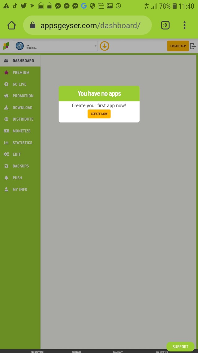 ১. প্রথমে আপনি যে ওয়েবসাইটে বানাবেন সে ওয়েবসাইটের নাম হল Apps Geyser। প্রথমত, আপনি Apps Geyser সাইটে লগইন করবেন। যদি আপনার রেজিস্ট্রেশন করা না থাকে তাহলে প্রথমে আপনি সেখানে রেজিস্ট্রেশন করবেন। তারপর দেখতে পাবেন প্রথমে লেখা আসবে Create Your Apps এখানে ক্লিক করবেন।