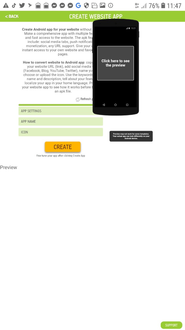 ২. তারপর দেখবেন একটি ইন্টারফেস চলে আসবে। ওই ইন্টারফেসে আপনি কোন কোয়ালিটির অ্যাপ বানাতে চান সেটি সিলেক্ট করবেন। আপনি যদি কোন ওয়েবসাইটের অ্যাপস বানাতে চান তাহলে প্রথমে দেখবেন লেখা আছে ক্রিয়েট Create Your Website App। ওইখানে ক্লিক করবেন।