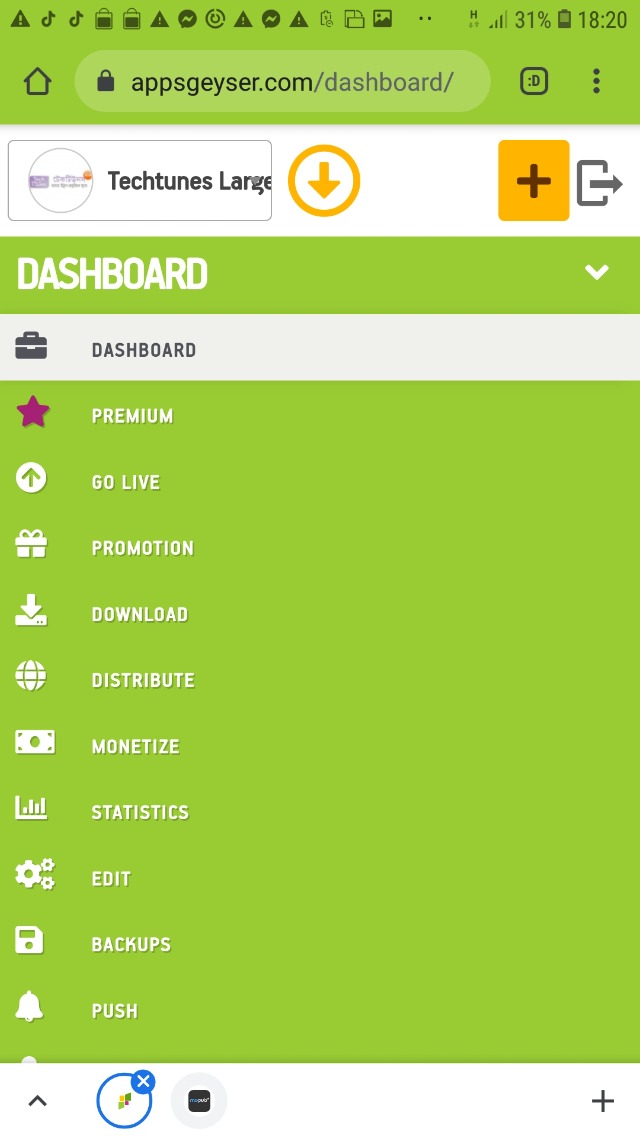 ১. এর জন্য আপনাকে যে ওয়েবসাইটের দরকার সে ওয়েবসাইটের নাম হল Mopub। কিন্তু তার আগে আমরা Apps Geyser ওয়েবসাইটে যে অ্যাপসটি বানিয়েছিলাম প্রথমে আমরা ওই ওয়েবসাইটে যাব। তারপর ড্যাশবোর্ড লেখায় ক্লিক করব এবং নিচে দেখবেন লেখা আছে মনিটাইজেশন। তারপরও মনিটাইজেশন অপশনে ক্লিক করব।
