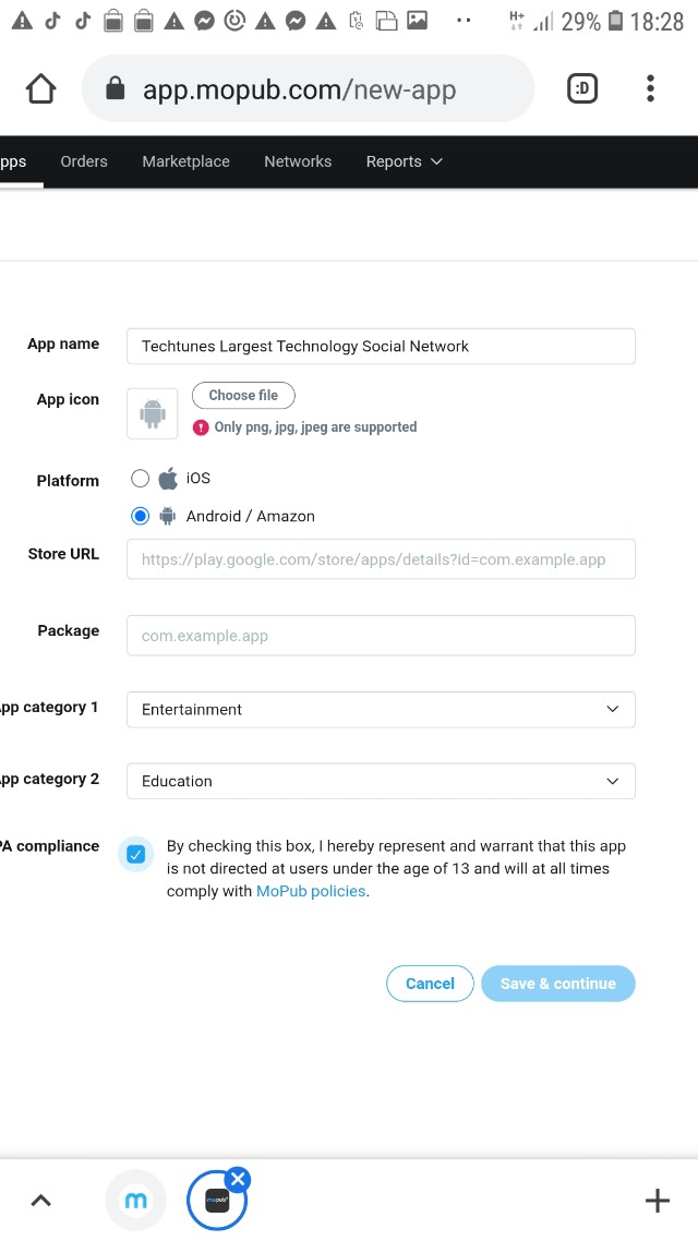 ২. তারপর সেখানে দেখবেন লেখা আছে এডমোব। সেখান থেকে আমরা এড নিতে পারি কিন্তু সেখান থেকে এখন আর নেওয়া যায় না। ওইখানে অ্যাড বসাতে হলে এখন টাকা লাগে, প্লে স্টোরে পাবলিশ করতে হয়। তাই আমরা ঐখানে এড বসাবো না আমরা অন্য নিয়মে এড বসাবো। এর জন্য admob লেখার নিচে দেখবেন লেখা আছে ফেসবুক এড নেটওয়ার্ক। তার নিচে দেখবেন লেখা আছে mopub.com ওইখানে ক্লিক করবেন।