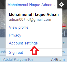 গুগলে লগড ইন থাকা অবস্থায় ডানদিকে উপরের কোনায় আপনার নামে বা ইমেইল অ্যাড্রেসে ক্লিক করুন। সেখান থেকে Account settings ক্লিক করুন।