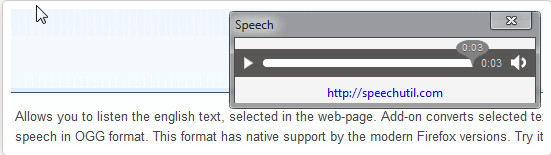 - Step 4 : Speech window will appear on the screen and you will be able listen to text, you just selected.
