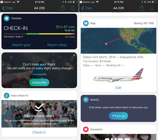 এপপ ইন দ্যা এয়ার একটি ফ্রি এপপ যেটি আপনি আইফোন, আইপ্যাড এমনকি এপল ওয়াচ য়েও ডাউনলোড করে ব্যবহার করতে পারবেন। তবে কিছু কিছু ফিচার আপনাকে কিনে নিতে হবে। যেমন ৪.৯৯ ডলার দিয়ে সাবস্ক্রিপশন কিনে নিয়ে আপনি রিয়েল টাইম ফ্লাইট স্ট্যাটাস আপডেটস, অটোমেটিক চেক-ইন এবং এসএমএস মাধ্যমে পুরো পরিবারের জন্য এই এপের ফিচারগুলো পেয়ে যাবেন।