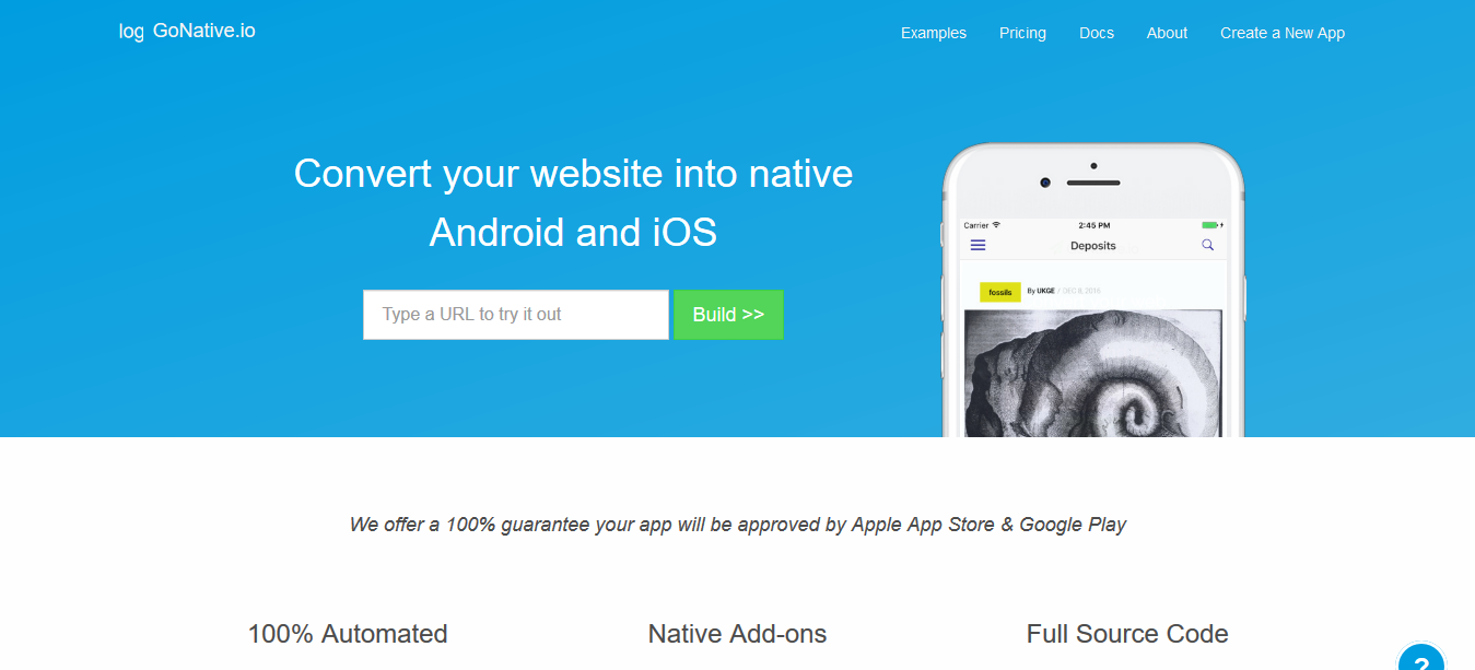 আমরা আজকে একটি ওয়েব সাইটের মাধ্যমে কিভাবে মোবাইল অ্যাপে রুপান্তর করবেন সেটা দেখবো। ওয়েব সাইটে ভিজিট করার জন্য এখানে ক্লিক করুন। তারপর আপনাকে তাদের হোমপেজে নিয়ে যাবে।