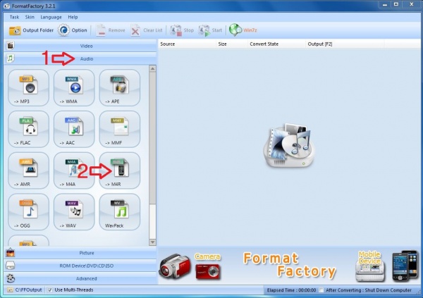 Format Factory ইন্সটল করার পর এবার নিচের ছবির মত Audio সিলেক্ট করে M4R ফরম্যাট সিলেক্ট করুন।