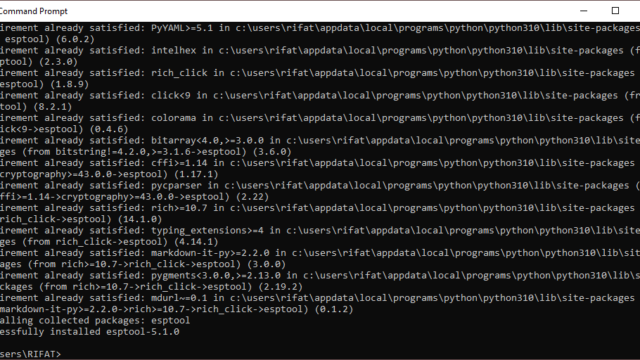Python 3 ইন্সটল হয়ে গেলে, Command Prompt ওপেন করে নিচের কমান্ডটি রান করুন, যাতে esptool.py এর সর্বশেষ ভার্সন ইন্সটল হয়।