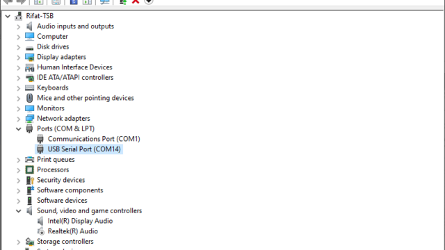 আপনার Wemos D1 Mini-টি কম্পিউটারের সাথে কানেক্ট করে Device Manager থেকে মাইক্রোকন্ট্রোলারটির জন্য Dedicated COM Port নম্বরটি মনে রাখতে হবে। আমার ক্ষেত্রে এটি COM14।