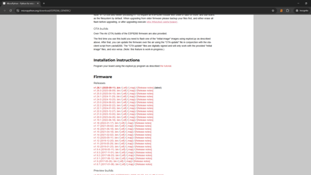 এর জন্য লিংকে ক্লিক করে v1.26.1 (2025-09-11).bin ফাইলটি ডাউনলোড করে নিন। (আমি যখন এই টিউটোরিয়্যালটি লিখছি, তখন v1.26.1 হচ্ছে MicroPython-এর Latest ভার্সন। )