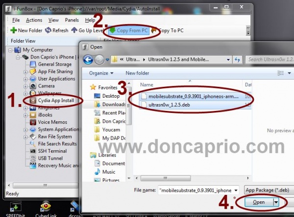 Step 3: iTunes বন্ধ করে দিয়ে আইফোন কম্পিউটারের সাথে সংযোগ করে উপরে দেয়া লিঙ্ক থেকে ডাউনলোড করা iFunbox ইন্সটল করে ওপেন করুন। এবার iFunbox Classic এ ক্লিক করে নিচের দিকে Cydia App Install এ অপশনে যান। এখন উপর দিক থেকে Copy From PC তে ক্লিক করলে যে বক্স ওপেন হবে তাতে পূর্বে ডাউনলোড করা ১২১ কেবি Ultrasn0w_1.2.8 এর ভিতর যে তিনটি ফাইল আছে তার সবগুলো সিলেক্ট করে ওপেন এ ক্লিক করুন। তিনটি ফাইল কপি হলে নিচের দিকে থাকা Device Safe Removal এ ক্লিক করে আইফোনটি কম্পিউটার থেকে ডিসকানেক্ট করুন। Settings > General > Cellular > Enable 3G অফ করে যেকোনো সিম লাগিয়ে দেখুন কাজ করবে। নিচের ছবি থেকে আইডিয়া নিয়ে নিতে পারেন। হুবহু এরকম হবে না। শুধু সিস্টেম দেখার জন্য ছবিটা দেয়া।