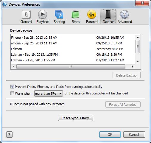 iTunes ওপেন করে সবার উপরে বামদিকে যে বাটন আছে তাতে ক্লিক করে যে অপশন আসবে সেখান থেকে Preferences এ গেলে নতুন একটি বক্স বা উইন্ডো আসবে। যা থেকে নিচের ছবিগুলোর মত সবকিছু সেট করে নিন। এটা করলে আপনার আইফোন Automatically কোন কিছু Sync হবে না। আমি ছবিগুলোতে যে যে জায়গায় টিক রেখেছি ঠিক সেখানে টিক রেখে বাকি সব টিক উঠিয়ে দিয়ে Ok চাপুন।