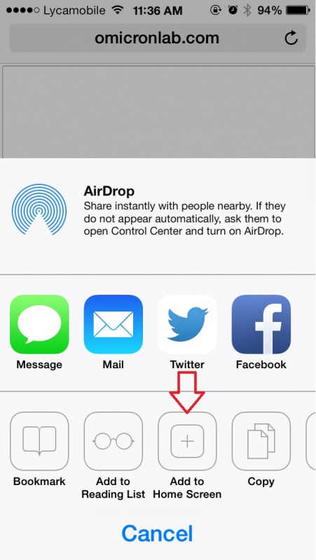 Step 1: যাদের iAvroPad আইকন অ্যাড করা আছে তারা Step 2 থেকে দেখুন। প্রথমে আপনার সাফারি ব্রাউজার ওপেন করে http://www.omicronlab.com/iavropad/ এ যান। যাদের iOS6 আছে তারা এখান থেকে ছবিসহ দেখতে পারেন কিভাবে ইন্সটল করবেন iAvroPad. এই ওয়েবসাইটে যাবার পর এমন ব্লাঙ্ক পেজ আসবে যা দেখে ঘাবড়ানোর কিছু নেই। এটা ব্লাঙ্কই থাকে। এখন তীর দেয়া অপশনে ক্লিক করুন। iOS6 বা তার নিচের সফটওয়্যার ভার্সন থাকলে তীর দেয়া জায়গায় যে অপশন থাকবে তাতে ক্লিক করলেই হবে।