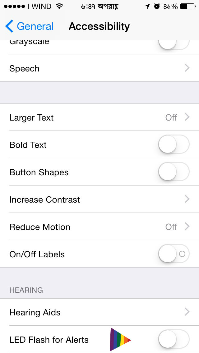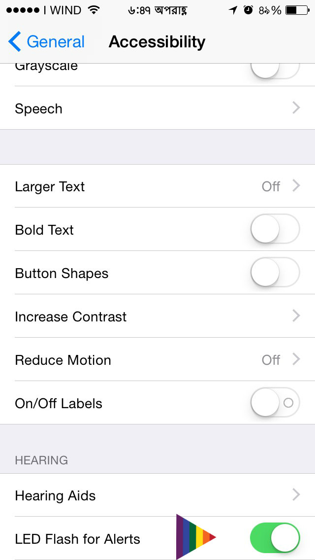 “setting > general > accessibility > LED flash for alerts” আমার সেট এ নাই।