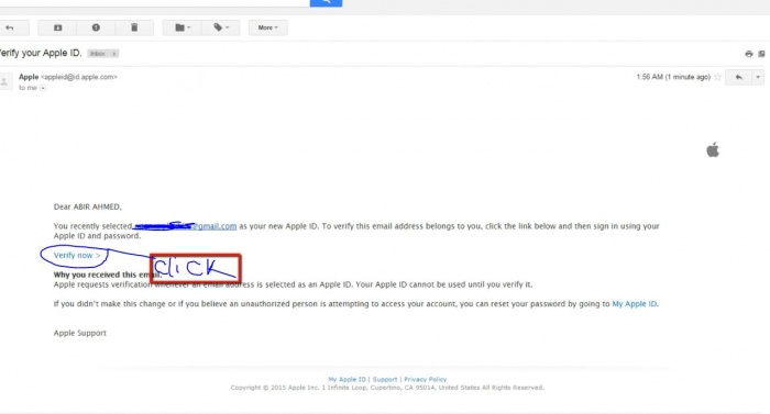 আপনার ই-মেইল একাউন্টে প্রবেশ করুন এবং Apple থেকে মেইলটি ওপেন করে Verify Now > তে ক্লিক করুন।