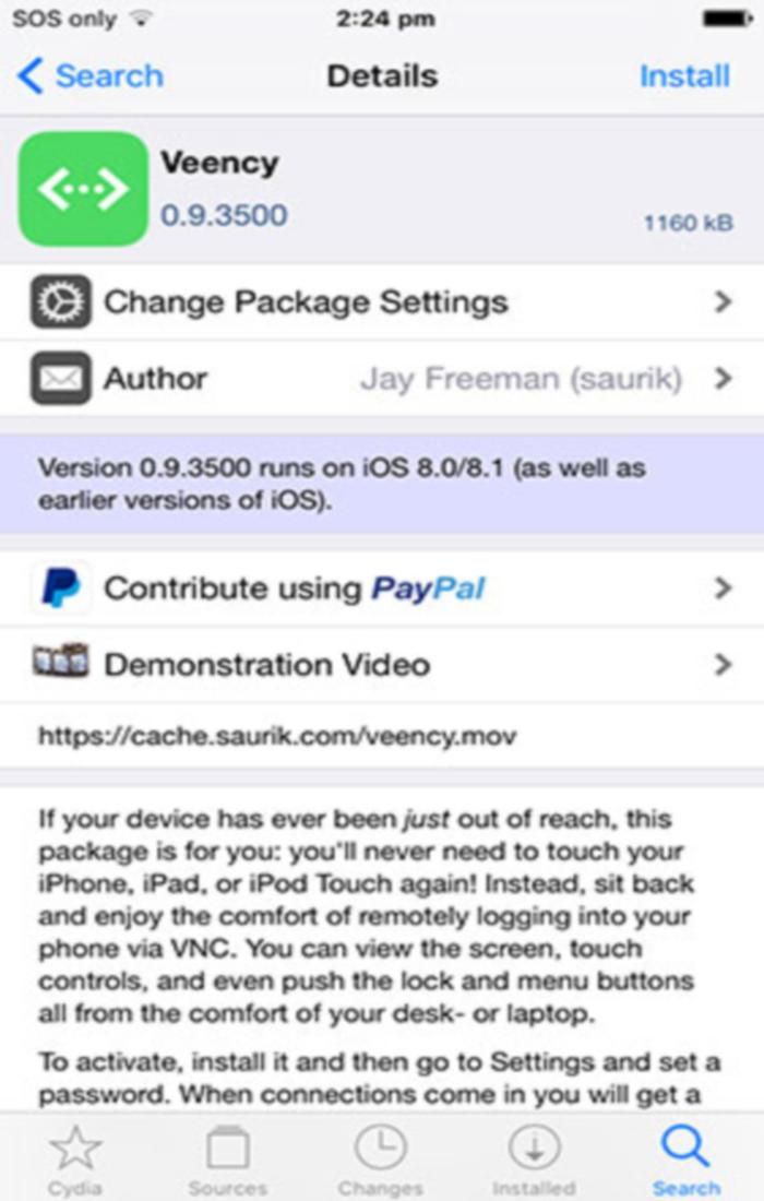 আপনার জেইলব্রেক করা ফোনে সাইডিয়া চালু করুন। কোনো প্রকার আপডেট দরকার হলে তা দিন। এরপর সার্চ বারে গিয়ে টাইপ করুন “Veency”। আর ফলাফলে ক্লিক করে ভিন্সি ইন্সটল করে নিন।