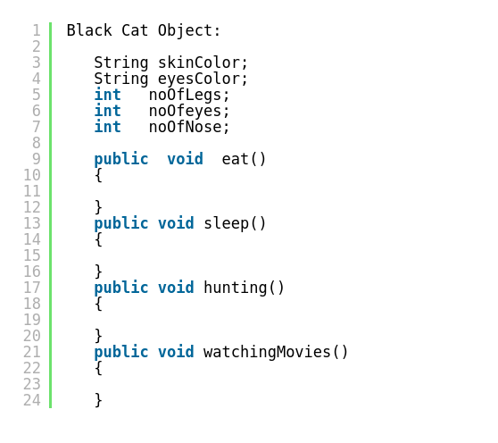আমার এখন একটা কালো বিড়াল অবজেক্ট লাগবে কারন আমি জাভা প্রোগ্রামে একটা সাদা বিড়াল রেখে দিয়েছি যার সাথে কালো বিড়ালের বিবাহ দিবো ।