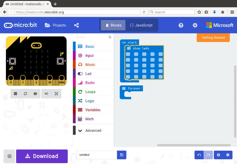 তো চলুন এবার টেস্টে নামা যাক! প্রথমে makecode.com সাইটে চলে যান এবং যে ধরনের বোর্ড আপনি ব্যবহার করতে চান সেটি সিলেক্ট করে নিন। এই টিউনে আমি উদাহরণ স্বরুপ micro:bit বোর্ডকে ব্যবহার করে দেখাবো। নতুন প্রজেক্ট ওপেন করা হলে আপনার সামনে একটি সহজবোধ্য ইন্টারফেস চলে আসবে যেখানে বামে আপনি একটি simulated dev board, মাঝখানে কমান্ড লিস্ট এবং ডানে প্রথম দুটি ব্লক সমৃদ্ধ একটি কোড উইন্ডোজ আসবে। এই দুটি স্টার্টআপ ব্লকগুলো যারা আগে যদি কখনো কোনো Arduino প্রোগ্রামিং করে থাকেন তাহলে তার সাথে এগুলোর হালকা মিল খুঁজে পেতে পারেন। এখানে “Start" এবং “Forever" হচ্ছে মেককোডের “Start" এবং "Loop" এর সাংস্কৃতিক ভাষা। যেকোনো এপ্লিকেশনের বেইস হলো এই দুটি ফাংশন। “start" ব্লকে কোনো কোড প্রবেশ করানো হলে উক্ত কোডটি ডিভাইসটি চালু করার সময়, রিস্টার্ট হবার সময় কিংবা রিসেট হবার সময় execute হবে। এই পদ্ধতিতে আপনার জন্য একবার ব্যবহারের উদ্দেশ্যে কোড প্রদান করা সহজ হয়ে যাবে। আর এর পরবর্তী ব্লক “Forever" এর কোডগুলো ডিভাইসটি চলমান অবস্থায় একের পর এক পুনরায় ভাবে চলতে থাকবে। আর এটি ডিভাইসটি বন্ধ হবার পর কোডিং বন্ধ হয়ে যাবে।