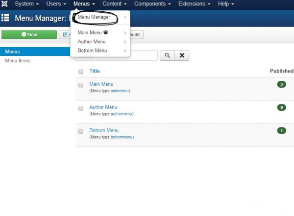 টিউনের নাম দেখে হইত বুঝে গেছেন আজকে কি নিয়ে আলোচনা করবো। হ্যাঁ বন্ধুরা আজকে আলোচনা করবো কিভাবে মেনু তৈরি করতে হয়। যাহোক প্রথমে আপনার সাইট এর এডমিন প্যানেল এ লগিন করুণ। এরপর উপরে dropdown মেনু থেকে Menu manager এ ক্লিক করুণ। কি করে করবেন নিছের ছবিতে দেখানো হয়েছে।