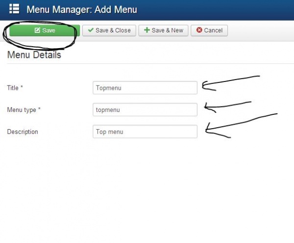 এখন বাম দিকে দেখেন New নামে একটা অপশন আছে ওইখানে ক্লিক করুণ। এখন নিছের ছবির দিকে খেয়াল করুণ। এখানে মেনুর নাম দিন এবং কি ধরনের মেনু তার নাম দিন। এরপর মেনু সম্পর্কে কিছু লিখুন তবে এখানে সব কিছু এক নামেই দিতে পারেন যেমনটি ছবিতে আছে। এবার Save ক্লিক করে বের হয়ে আসুন।