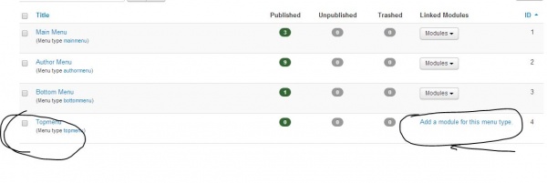 এবার নিছের ছবির দিকে দেখুন। এখানে আপনি যে মেনু তৈরি করেছেন ঐ মেনুর দান দিকে দেখুন লেখা আছে Add a module for this menu type এখানে ক্লিক করুণ। কারন আপনি যেখানে মেনু শো করাতে চান সেটি নির্ধারণ করে দিতে হবে।
