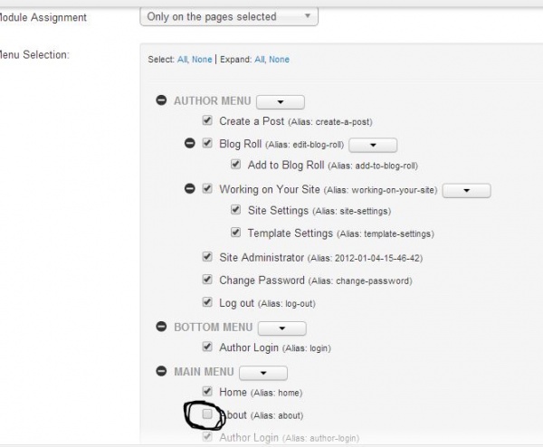 এখন আপনি মনে করুণ আপনার এই টপ মেনু মাইন মেনুর About নামক পেজ এ শো করাতে চাচ্ছেন না তাহলে নিছের ছবির মতো টিক তুলে দিন এবং Save এ ক্লিক করুণ।