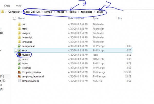 আপনার এই favicon কপি করে আপনার সাইট যেখানে আছে ওইখানে গিয়ে পেস্ট করতে হবে। কোথায় কপি করবেন ছবিতে দেখান পথে জান। এখানে ১ নাম্বার এ joomla আছে এখনে আপনি আপনার সাইট এর ফাইল এর যে নাম দিয়েছেন ওইটা হবে আর দুই এ আপনি যে টেমপ্লেট ব্যবহার করতেছেন তাই হবে আমি এখানে beez3 ব্যবহার করতেছি তাই এখানে এটি সিলেক্ট করেছি। এখানে দেখেন favicon নামে একটা ইমেজ আছে ওইটা ডিলিট করে আপনার favicon পেস্ট করে দিন। বাস কাজ ওকে।পরিবর্তন না হলে আপনার ব্রাউজার আর cache clear করুন দেখবেন শো করবে।