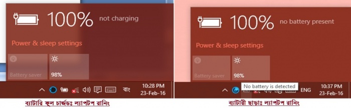 ১. কম্পিউটার নিজে থেকেই ব্যাটারী থেকে পাওয়ার নেয়া শুরু করবে।