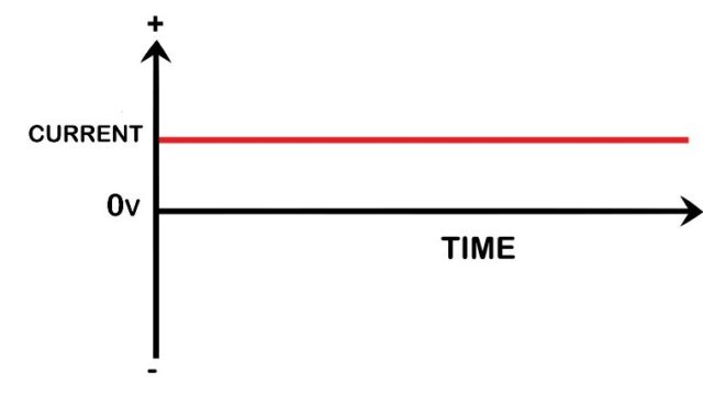 ২. ডিসি কারেন্ট (DC Current) : যে কারেন্ট সব সময় একই দিকে প্রবাহিত হয় এবং যার মান নির্দিষ্ট থাকে, তাকে ডিসি কারেন্ট বা ডাইরেক্ট কারেন্ট বলে। এই কারেন্টের পজিটিভ ও নেগেটিভ পোলারিটি সব সময় অপরিবর্তিত থাকে। যেমনঃ ব্যাটারি এর কারেন্ট