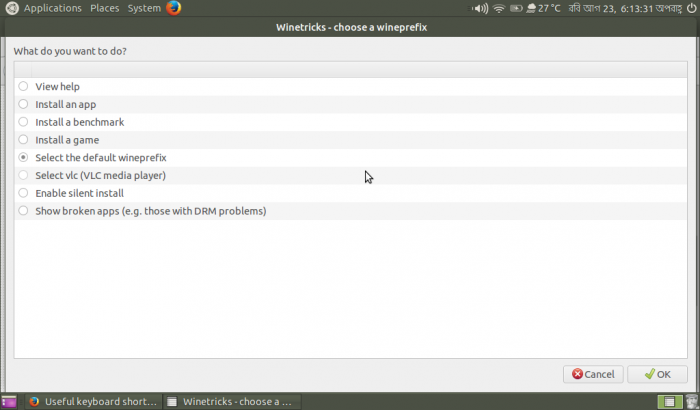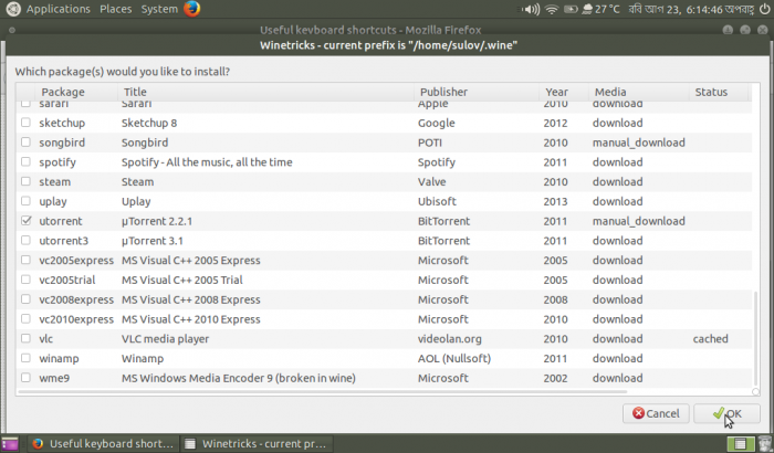 Application ➡ Wine ➡ Winetricks একটার পর একটায় ক্লিক করুন।