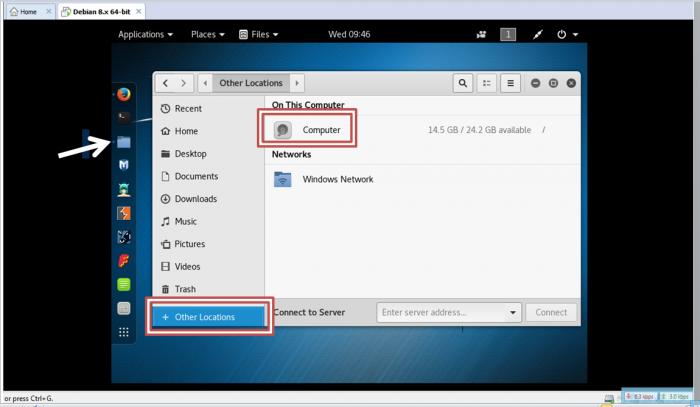 প্রথমে নিচের চিত্রের মত টাস্কবার থেকে files এ ক্লিক করে Other Locations থেকে Computer এ ক্লিক করুন।