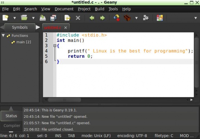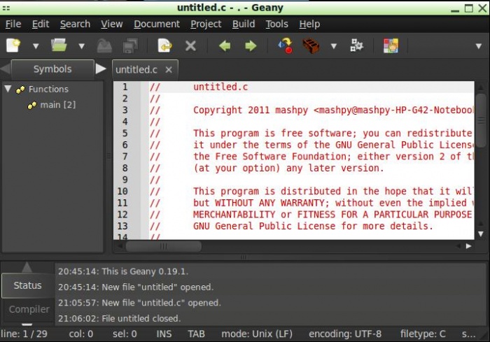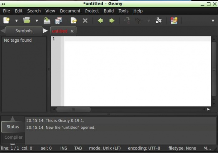 menu- all application থেকে Geany বের করে অপেন করুন। প্রথমে নিচের মত আসবে।