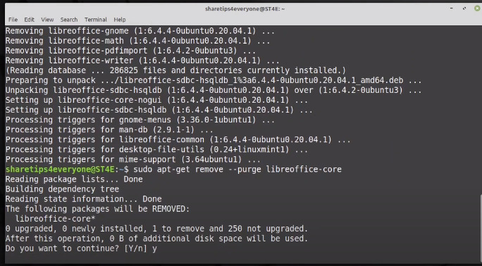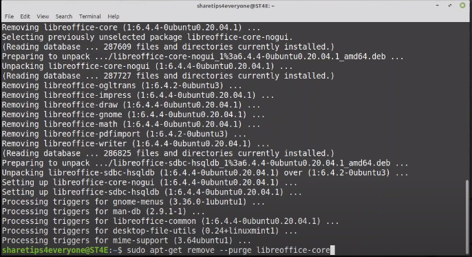 টার্মিনালে নিচের কোডটি কপি করে পেষ্ট করুন। sudo apt-get remove –purge libreoffice-core