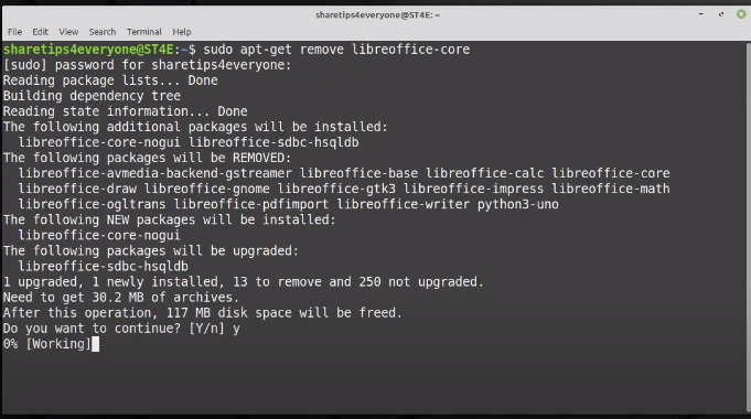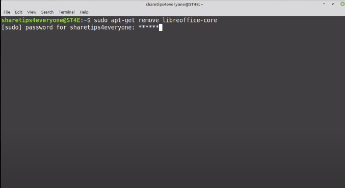 টার্মিনালে কোডটি > sudo apt-get remove libreoffice-core কপি করে পেষ্ট করুন।