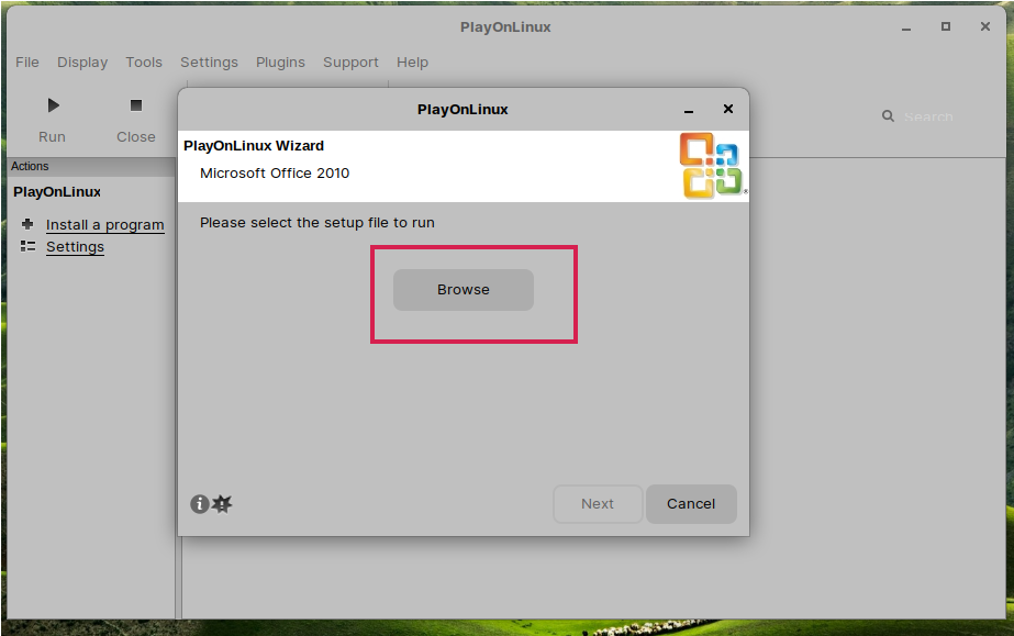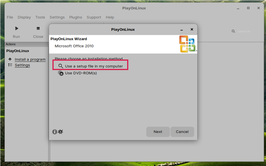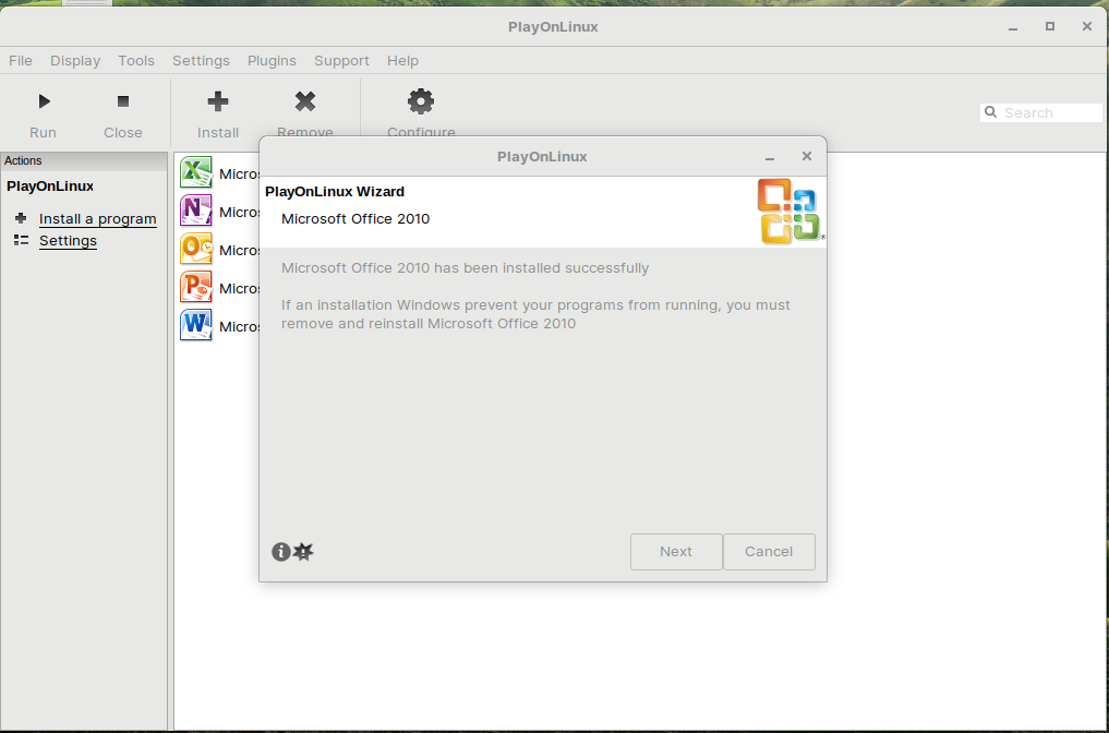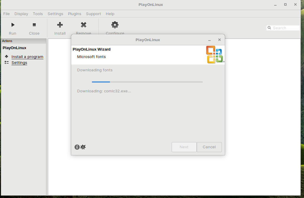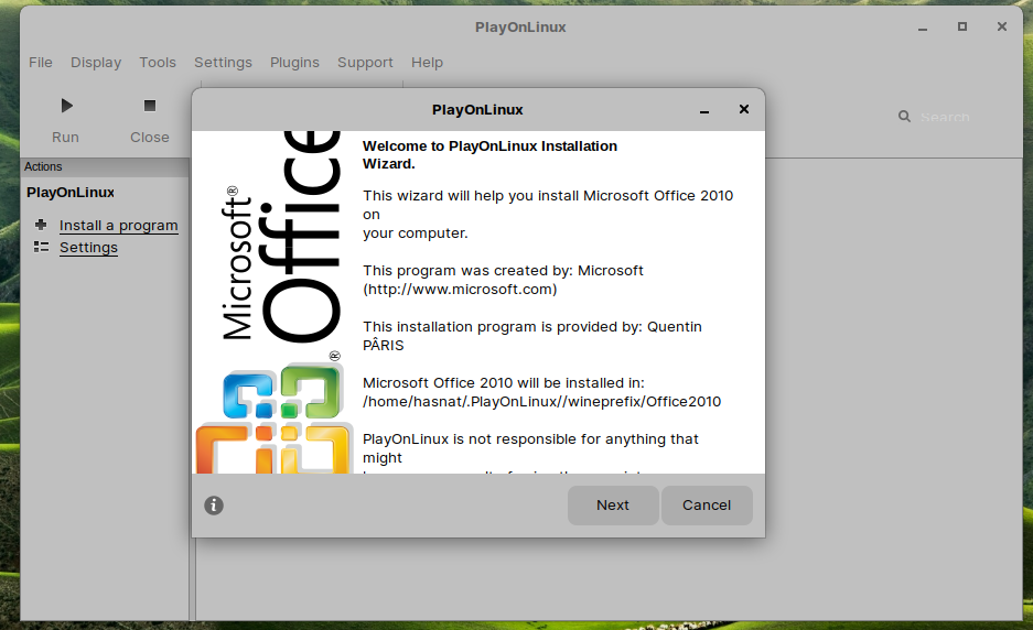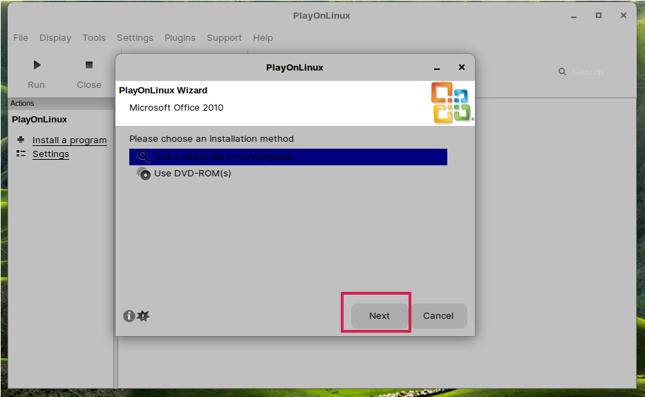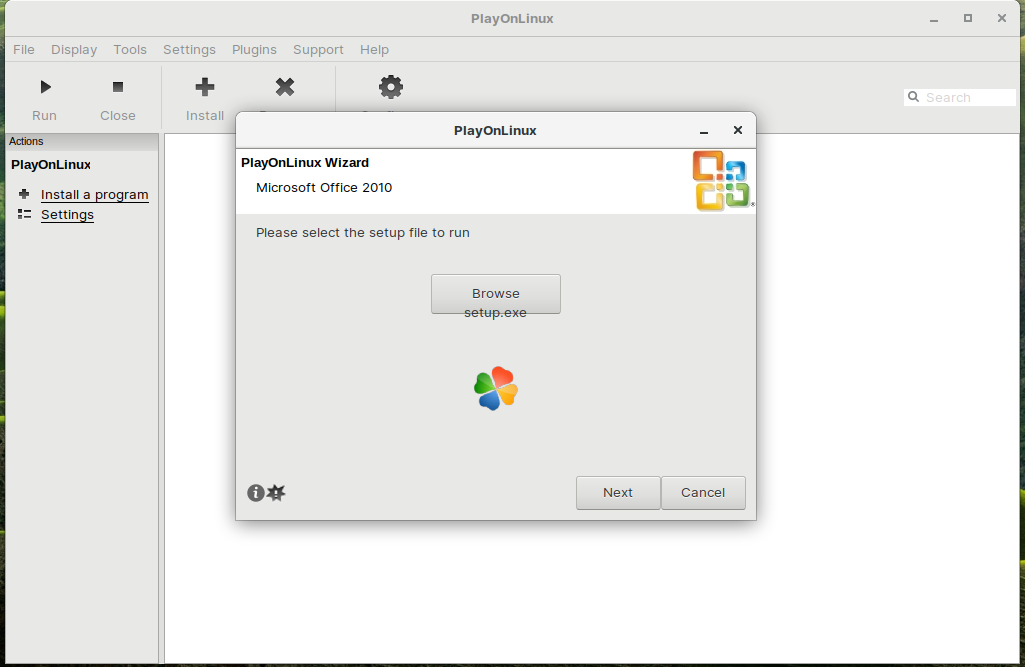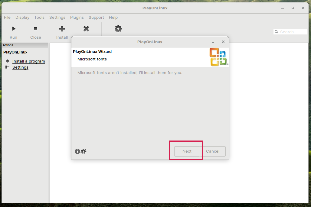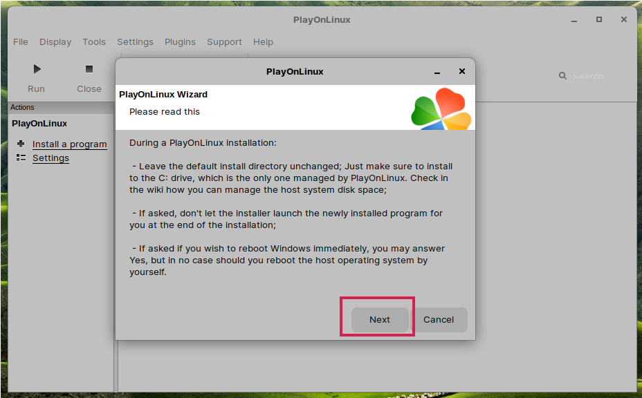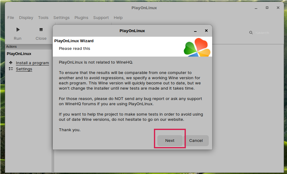 PlayOnLinux Wizard পপআপ উইন্ডো আসলে নেক্সট ক্লিক করুন