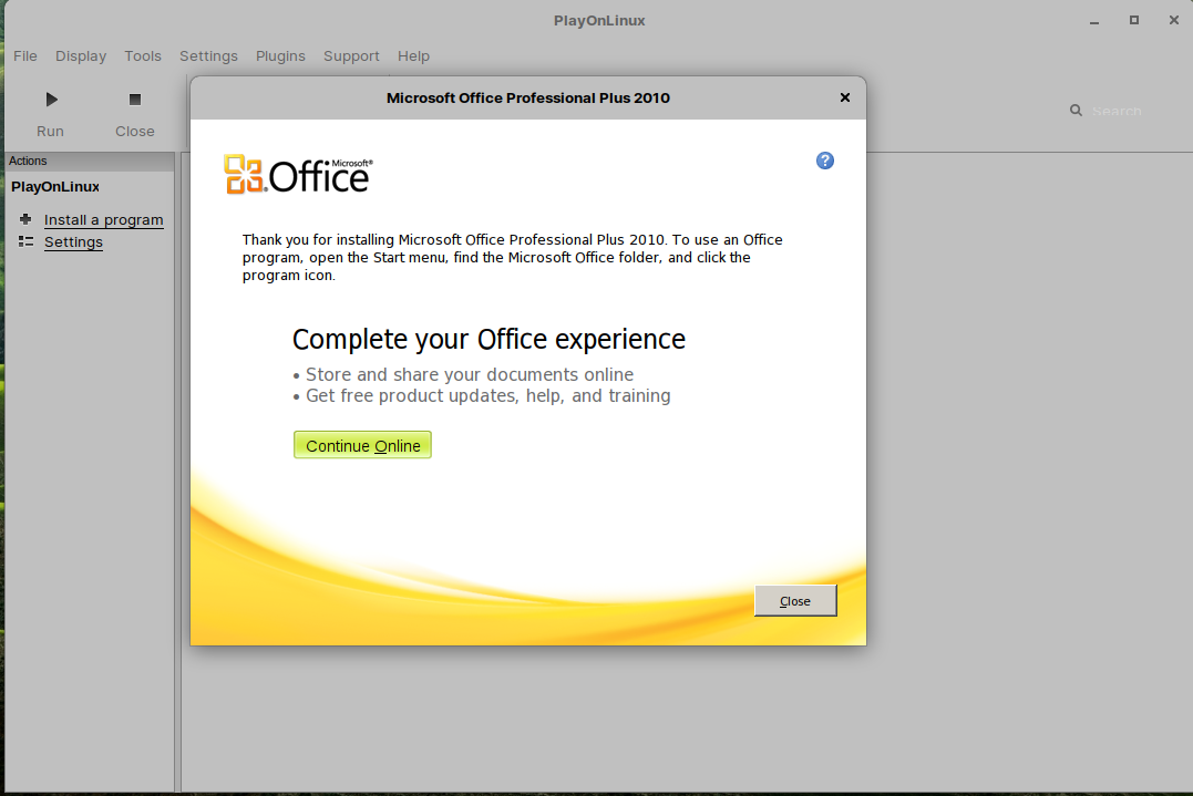 লিনাক্সে আমি নতুন বলতে পারেন হাতেখড়ি। চেষ্টা করছি লিনাক্সে অভ্যস্ত হওয়ার। তাই অফিস ২০১০ ইনষ্টল করে দেখা। যারা প্রফেশনাল এই ব্যাপারে আশা করি কিছু ভুলভ্রান্তি হলে সংশোধন করে দেওয়ার অনুরোধ রইল।