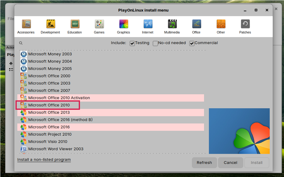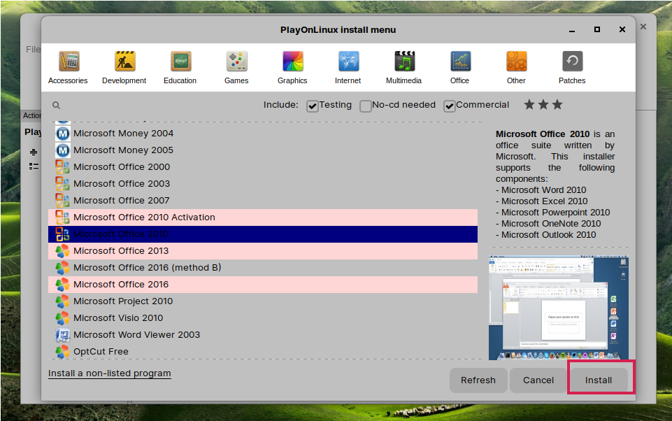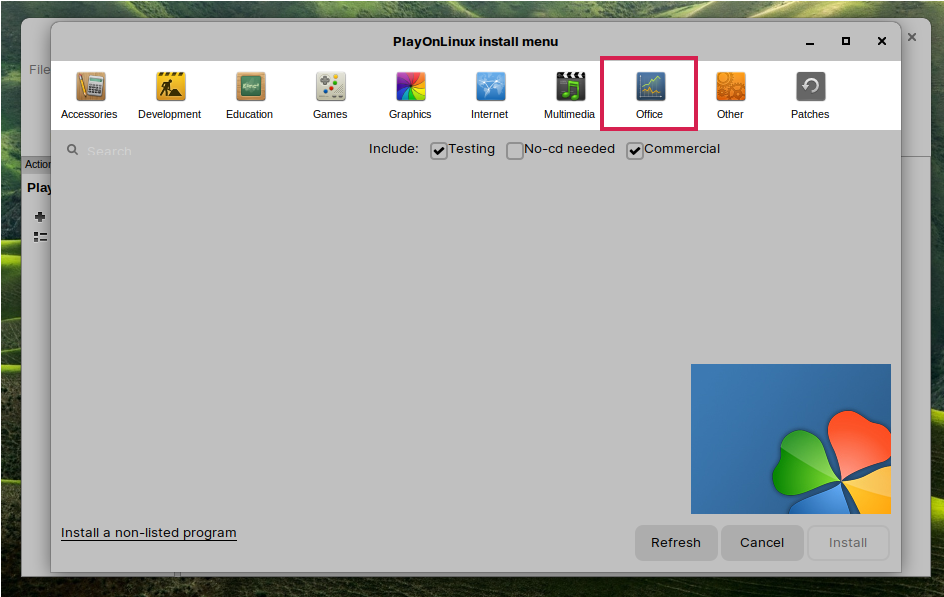 প্লেঅনলিনাক্স ইনষ্টল মেনু আসলে অফিস টেব এ ক্লিক করুন