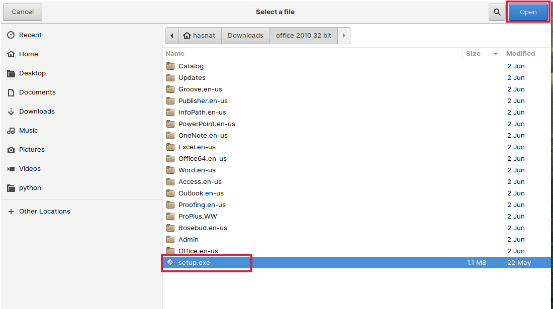 মাইক্রোসফট অফিস ২০১০ লিনাক্সে ইনষ্টল করার জন্য সর্বপ্রথম সেটআপ ফাইল ডাউনলোড করে নিতে হবে।