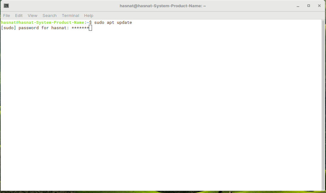 টার্মিনালে পাসওয়ার্ড চাইবে, পাসওয়ার্ড টাইপ করুন কিবোর্ড থেকে থেকে এন্টার বাটন প্রেস করুন