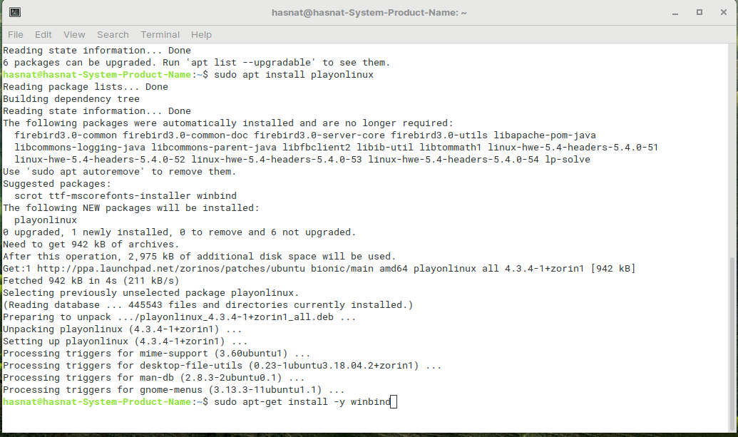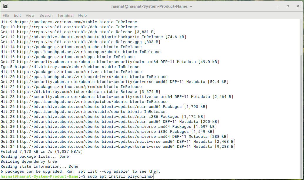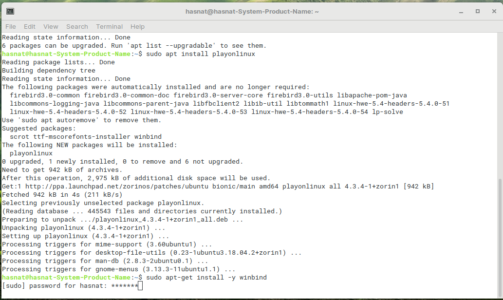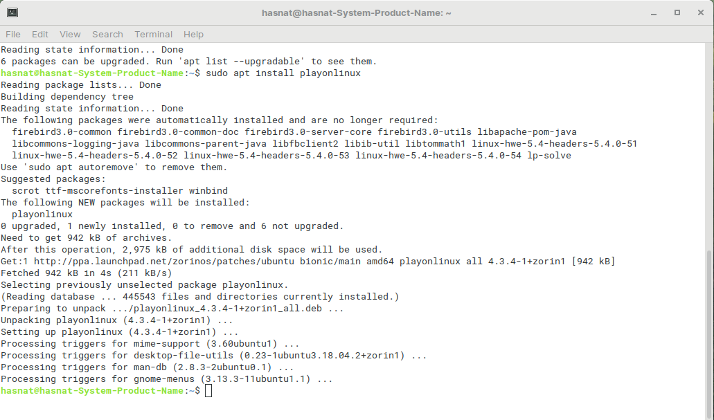 এরপর টাইপ করুন এই কমান্ড > sudo apt install playonlinux![]()