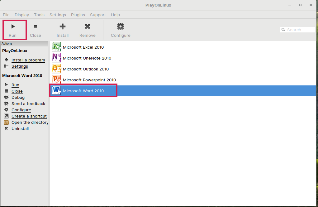 সিলেক্ট Word 2010 তারপর Run বাটনে ক্লিক করুন