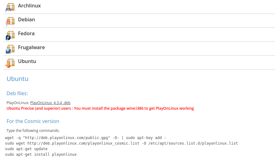আমাদের যে সফটওয়্যার টির প্রয়োজন হবে সেটির নাম হচ্ছে PlayOnLinux। সফটওয়্যারটি ডাউনলোড করার জন্য এখানে ক্লিক করুন। তারপর নিচের মতো একটি পেজ ওপেন হবে।
